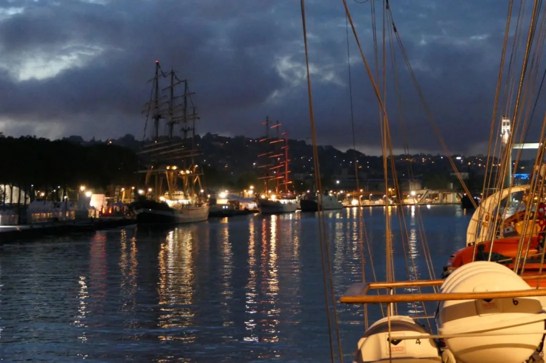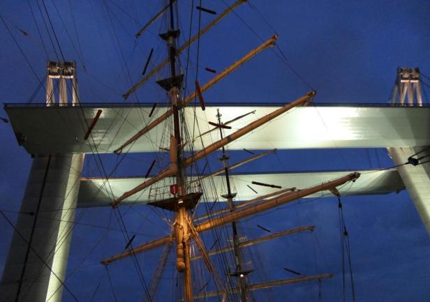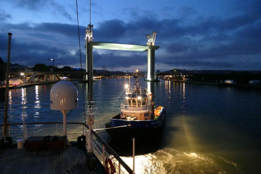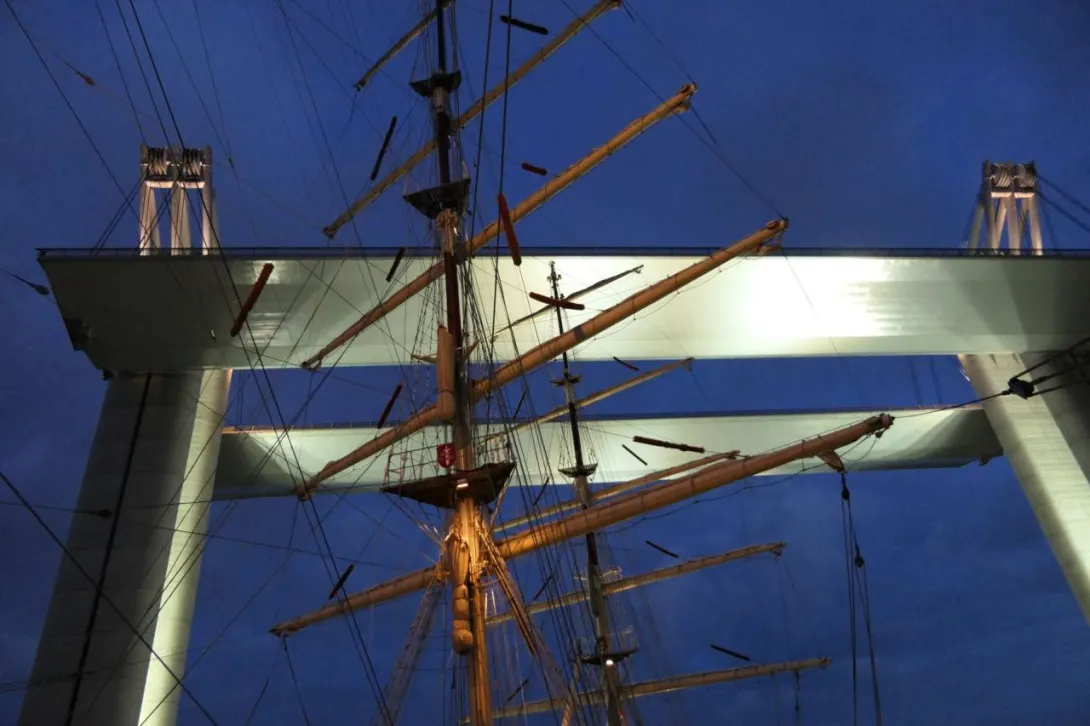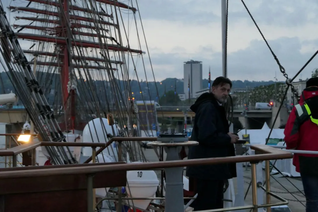 Na redę Le Havre dotarliśmy 05/06 wieczorem i przez cała noc płynęliśmy w górę Sekwany żeby o 0600 zacumować wśród największych żaglowców. Tuż za nami stoi „Siedow”, jest też „Mir”, „Kruzenshtern”, „Mircea”, „Shabab Oman II”, „Cisne Branco”, „Cuauthemoc”, „Belem” i wiele innych. Podobno ma być 50 statków. Żaglowce stoją blisko siebie po obu stronach Sekwany.