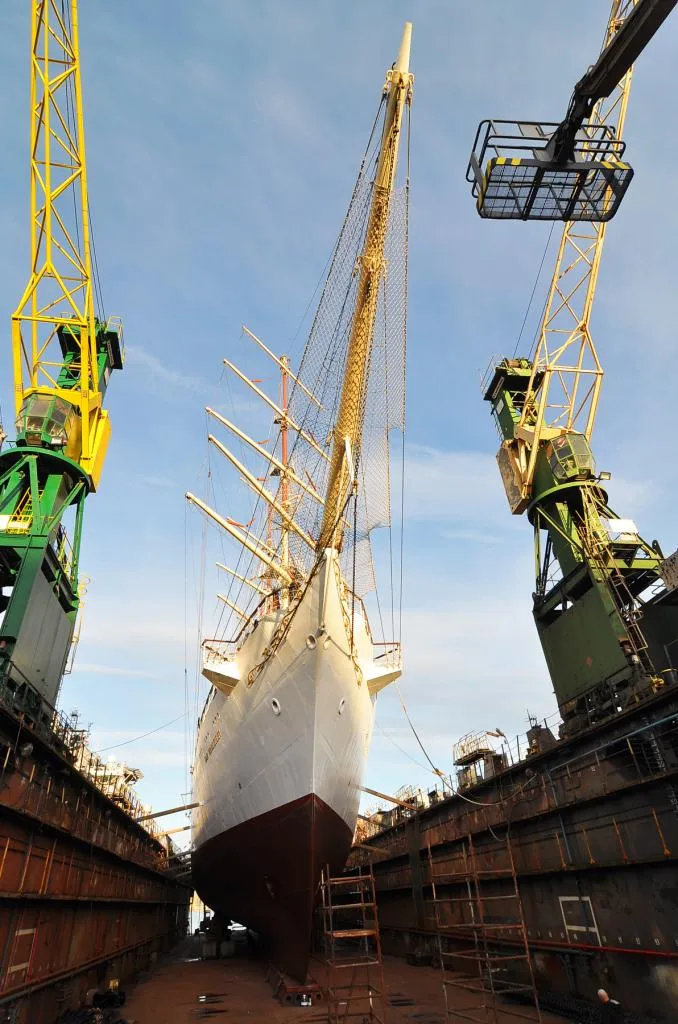 W ramach prac remontowych, tzw. odnowienia klasy, żaglowiec pod koniec stycznia trafił na dok gdyńskiej Stoczni Remontowej „Nauta”. Po dokładnym zmyciu i oskrobaniu całego kadłuba, przeprowadzono miejscowo piaskowanie oraz wymianę  elementów ochrony anodowej. Poddano kompleksowym pracom remontowo- konserwacyjnym – pomiarom, czyszczeniu, malowaniu - systemy kotwiczne, czujniki logu elektromagnetycznego i echosond, śrubę napędową i śrubę steru strumieniowego. Przeprowadzono płukanie zbiorników wody słodkiej, czyszczenie zęz, zaworów dennych i kingstonów. Wśród prac pokładowych wymienić należy sprawdzenie elementów takielunku stałego na masztach. Wszystkie prace prowadzone są pod nadzorem Polskiego Rejestru Statków.