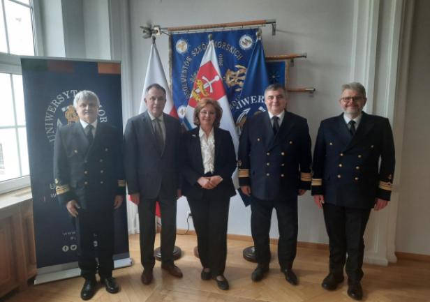 W dniu 16 kwietnia 2025 roku odbyło się spotkanie z udziałem władz Uczelni oraz Ambasador Republiki Albanii w Polsce Mimozą Halimi w celu omówienia potencjalnej współpracy. W wydarzeniu uczestniczył JM Rektor prof. dr hab. inż. kpt. ż.w. Adam Weintrit.