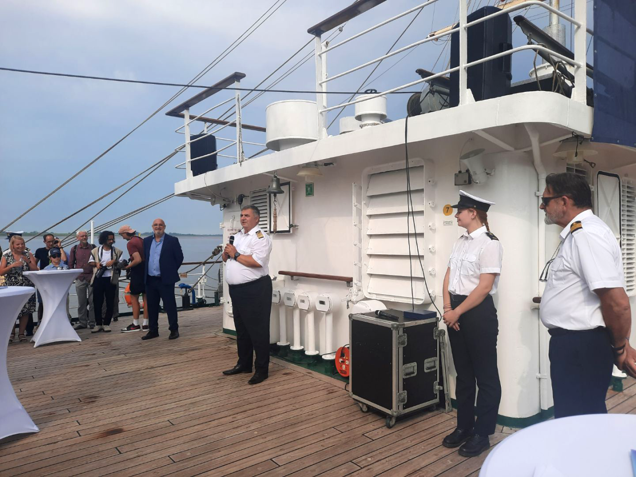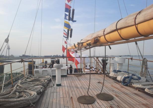 14 sierpnia w ramach wydarzenia miało miejsce oficjalne spotkanie przedstawicieli obydwu uczelni na pokładzie „Daru Młodzieży”. Uczestników tej części obchodów powitał JM Rektor prof. Adam Weintrit, który przypomniał, że Uniwersytet Morski w Gdyni nawiązał współpracę z uczelnią w Bremerhaven niemal 50 lat temu. Wskazał przy tym, że była to pierwsza tego rodzaju współpraca, jaką Uczelnia nawiązała z Uniwersytetem położonym w zachodniej części Europy. JM Rektor podkreślił, że współpraca między uczelniami ma wyjątkowe znaczenie dla Uniwersytetu Morskiego w Gdyni. Nadmienił przy tym, że żywi nadzieję, iż udział delegacji Uczelni w obchodach 50-lecia Hochschule Bremerhaven będzie sprzyjać nawiązaniu kolejnych relacji, a także umocnieniu dotychczasowej współpracy.