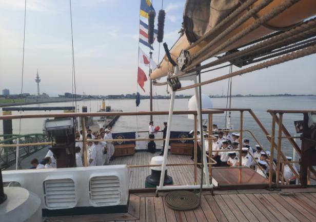 Obchody z udziałem delegacji Uczelni zaplanowano m.in. na pokładzie „Daru Młodzieży”, który 13 sierpnia br. wpłynął wraz z praktykantami Uniwersytetu Morskiego w Gdyni do portu w Bremerhaven. Statek szkolny powitała delegacja Uczelni wraz z JM Rektorem prof. dr. hab. inż. kpt. ż.w. Adamem Weintritem na czele, a także przedstawiciele Hochschule Bremerhaven reprezentowani przez Rektora prof. Alexisa Papathanassisa.