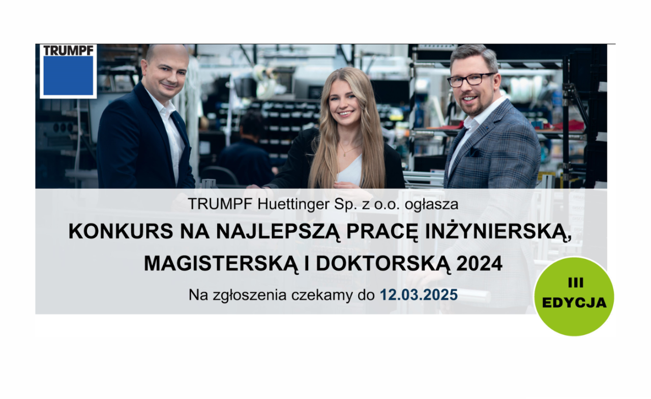 Ogólnopolski konkurs TRUMPF Huettinger na najlepszą pracę inżynierską, magisterską i doktorską