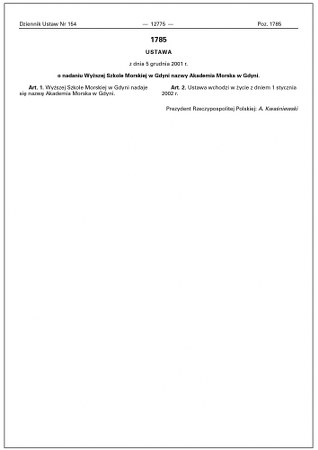Nazwa Uniwersytet Morski w Gdyni została nadana naszej Uczelni Rozporządzeniem Ministra Gospodarki Morskiej i Żeglugi Śródlądowej (Dz. U. 2018 poz. 1362).