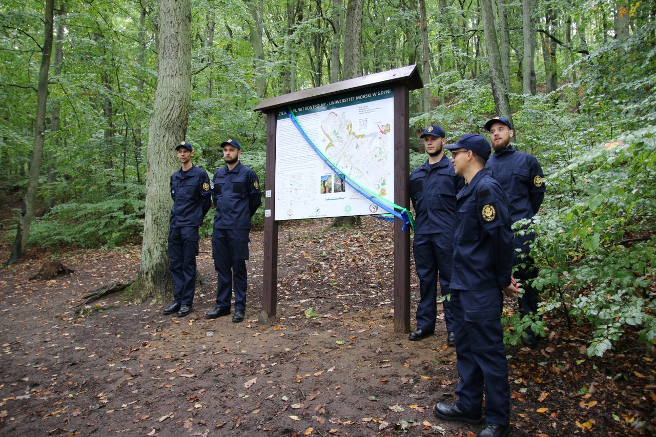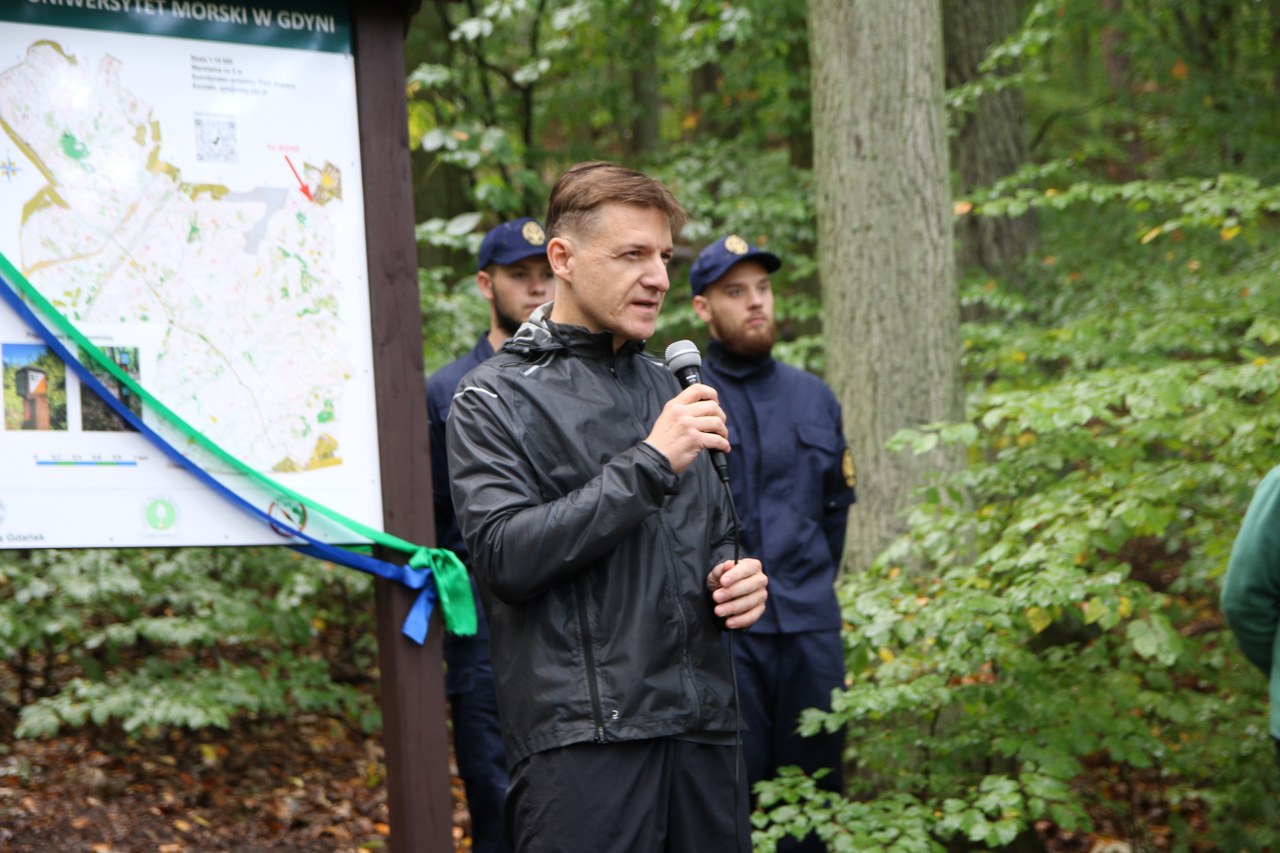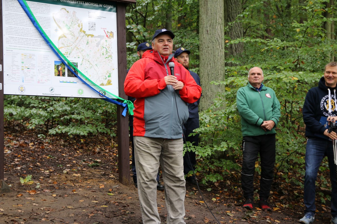Otwarcie ZPK-UMG odbyło się w dniu 14.X.2023r. przy wejściu do lasu znajdującym się najbliżej kampusu Uniwersytetu Morskiego, tj. przy końcu ul. Grabowo w Gdyni (pozycja startu "S1" na załączonych mapach). Garść informacji na temat otwarcia i (z)realizowanego projektu można znaleźć m.in. w zwięzłych materiałach opublikowanych w internecie, np.