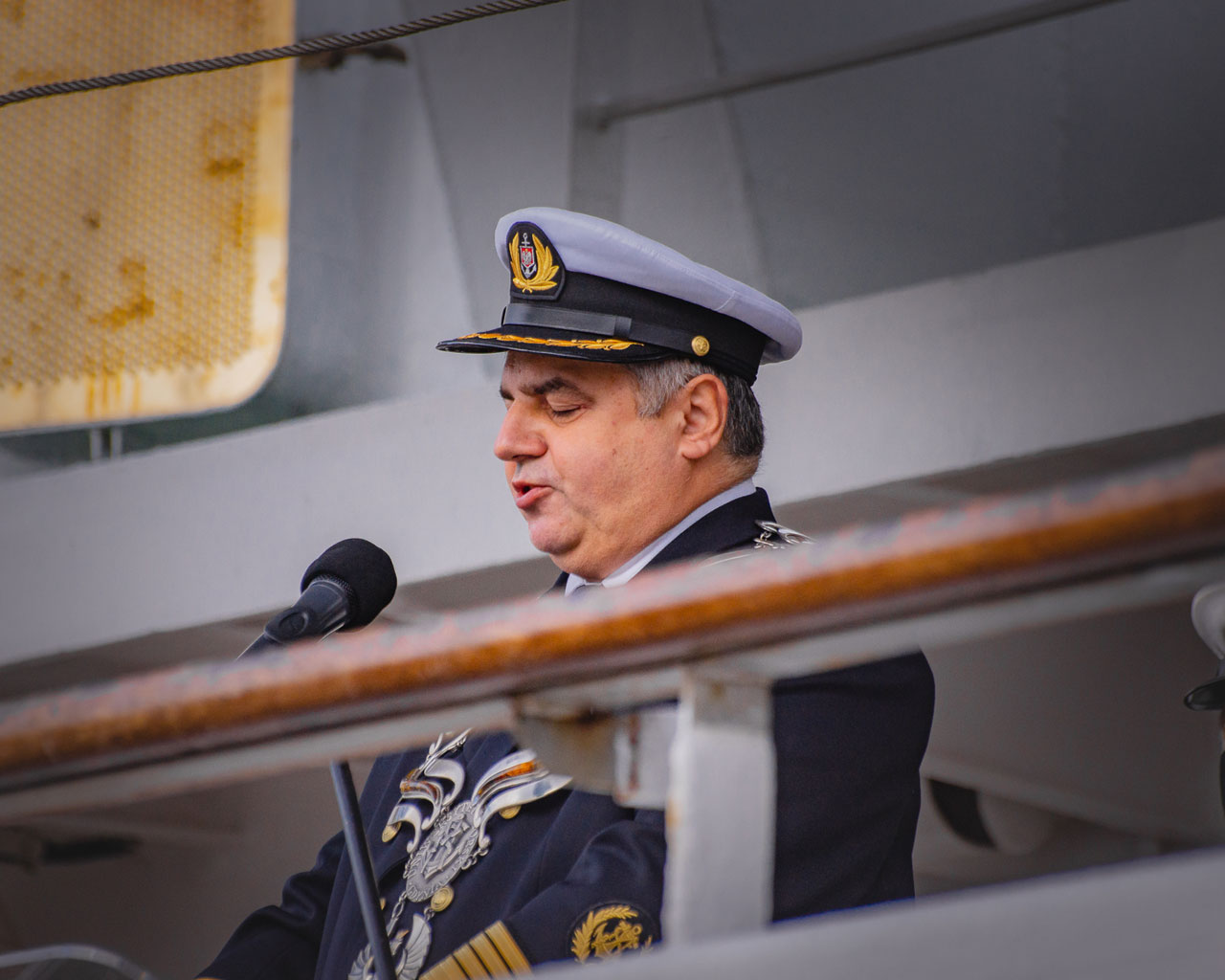 W staraniach o zachowanie morskości naszej uczelni czuję wsparcie stowarzyszeń morskich, których sztandary powiewają dzisiaj obok sztandaru naszej Uczelni. Mam tu na myśli: Stowarzyszenie Kapitanów Żeglugi Wielkiej, Stowarzyszenie Starszych Mechaników Morskich, czy Stowarzyszenia Elektryków Okrętowych. Nie bez znaczenia jest dla mnie fakt, że tuż za mną stoi tu na pokładzie Daru Młodzieży i wspiera mnie aż sześciu moich poprzedników, byłych rektorów naszej Uczelni: prof. Daniel Duda, prof. Józef Lisowski, prof. Piotr Przybyłowski, prof. Romuald Cwilewicz, prof. Piotr Jędrzejowicz i prof. Janusz Zarębski.