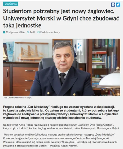 Gość Dnia Radia Gdańsk - profesor Adam Weintrit, Rektor Uniwersytetu Morskiego w Gdyni, kapitan żeglugi wielkiej