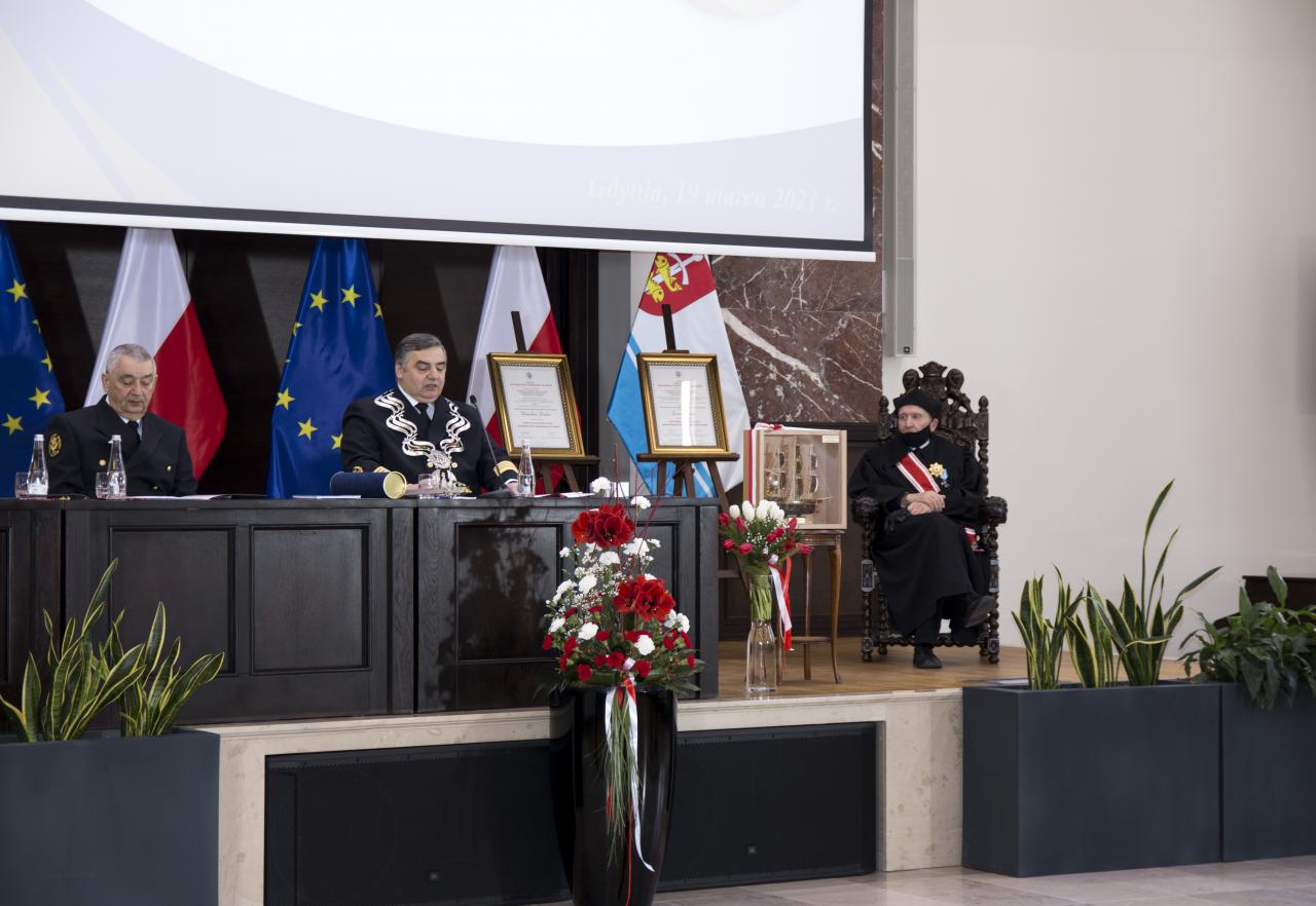 Za chwilę przypadnie mi w udziale ogromny zaszczyt i wielki honor ogłoszenia decyzji Senatu Uniwersytetu Morskiego w Gdyni o nadaniu Panu prof. dr. kpt. ż.w. Danielowi Dudzie zaszczytnego tytułu Doktora Honoris Causa Uniwersytetu Morskiego w Gdyni.